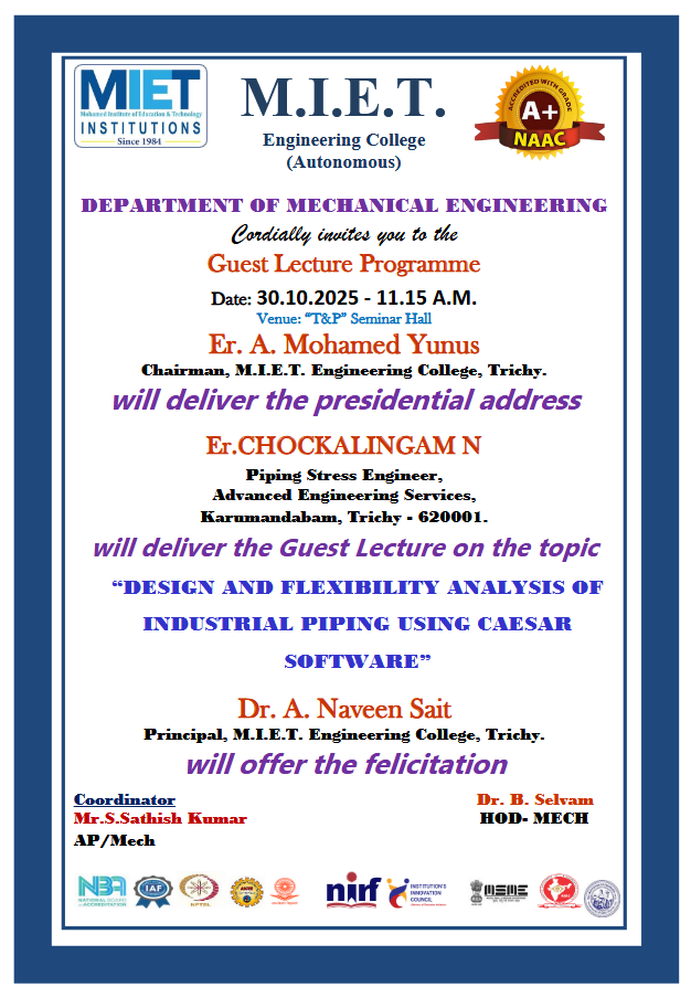 Resource person : Er. Chockalingam N Piping Stress Engineer, Advanced Engineering Services, Karumandabam, Trichy – 620001.