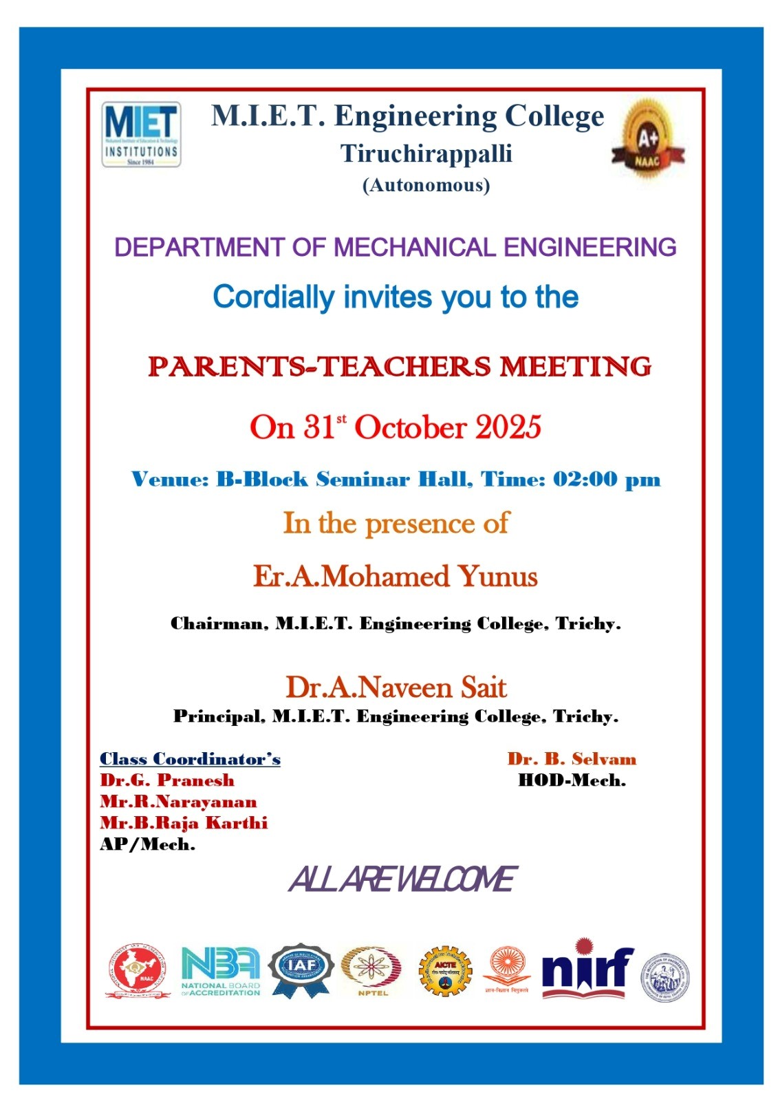 Venue : B – Block Seminar Hall