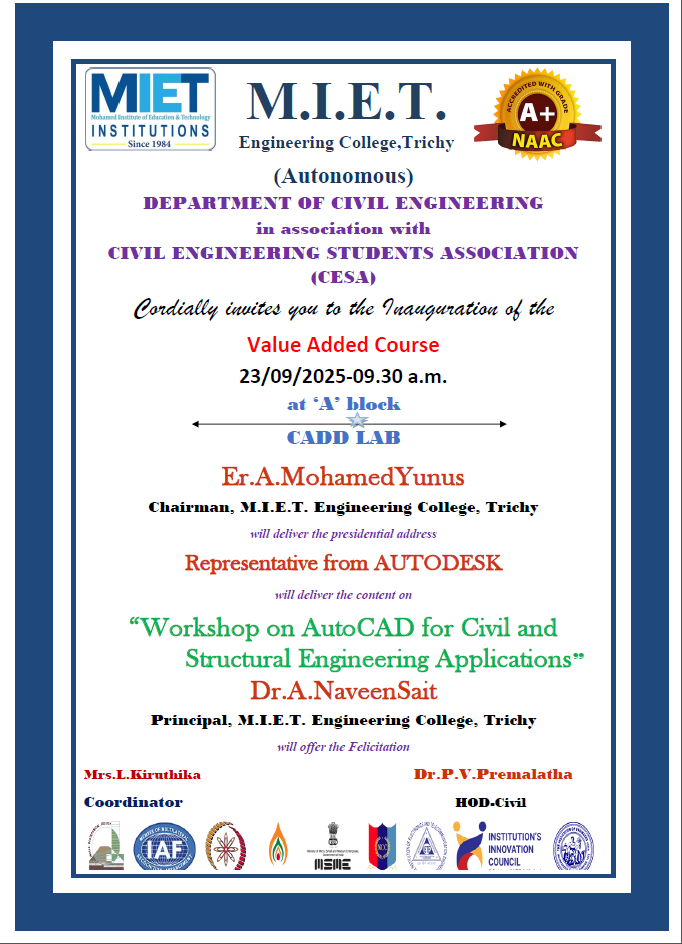 Topic : “Workshop on AutoCAD for Civil and Structural Engineering Applications”