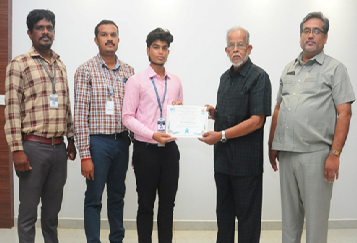 Honourable Chairman and Revered Principal appreciated the incubatee, Mr. New Winson B, a III Year Mechanical Engineering student at M.I.E.T. Engineering College (Autonomous), Trichy, for securing ₹15 Lakhs in the MSME Idea Hackathon 4.0.